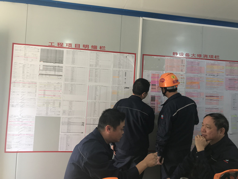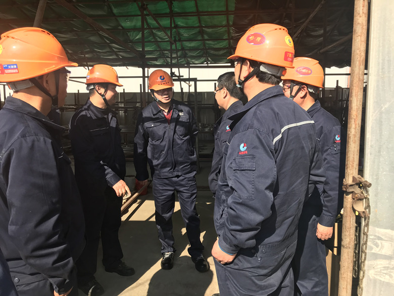 劉董事長(zhǎng)一行從2#大門進(jìn)入裝置,映入眼簾的是一支支辛勤勞動(dòng)、細(xì)致嚴(yán)謹(jǐn)?shù)臋z修隊(duì)伍。每當(dāng)經(jīng)過我公司將士檢修的裝置時(shí),副指揮王建明就會(huì)一一介紹該區(qū)域總體的檢修內(nèi)容、參檢專業(yè)、當(dāng)前進(jìn)度和關(guān)鍵重點(diǎn)項(xiàng)目及困難點(diǎn)。對(duì)于現(xiàn)場(chǎng)標(biāo)準(zhǔn)化的作業(yè)和嚴(yán)格的安全管理,劉董事長(zhǎng)頻頻點(diǎn)頭,并表示,檢修進(jìn)入關(guān)鍵時(shí)期,切記要強(qiáng)化管理,全局督查,全力以赴搞好此次檢修工作,確保安全、質(zhì)量、進(jìn)度全面受控。